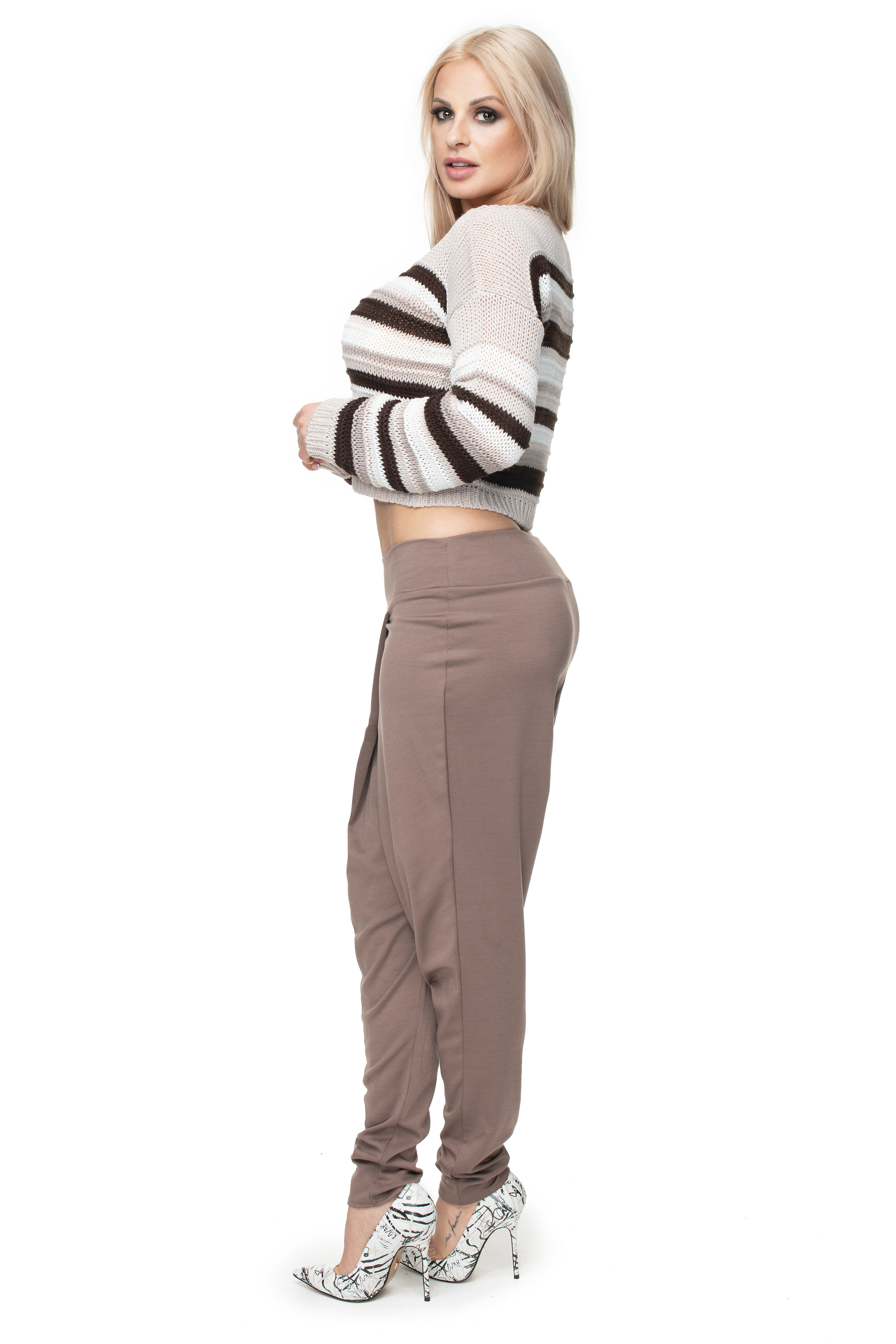 Krótki sweterek w paski.