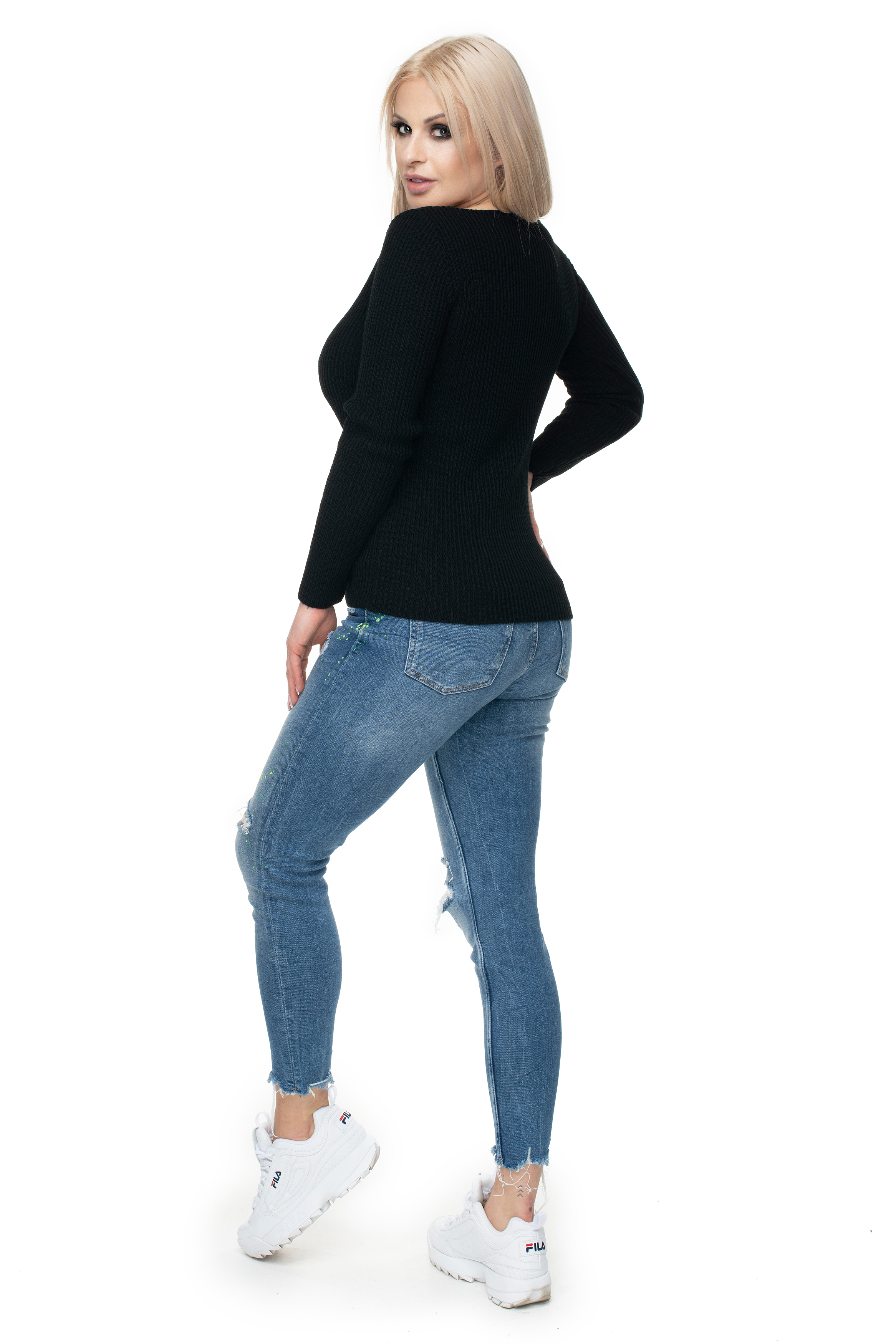 70021 KLASYCZNA BLUZKA SWETER W PRĄŻEK CZARNY